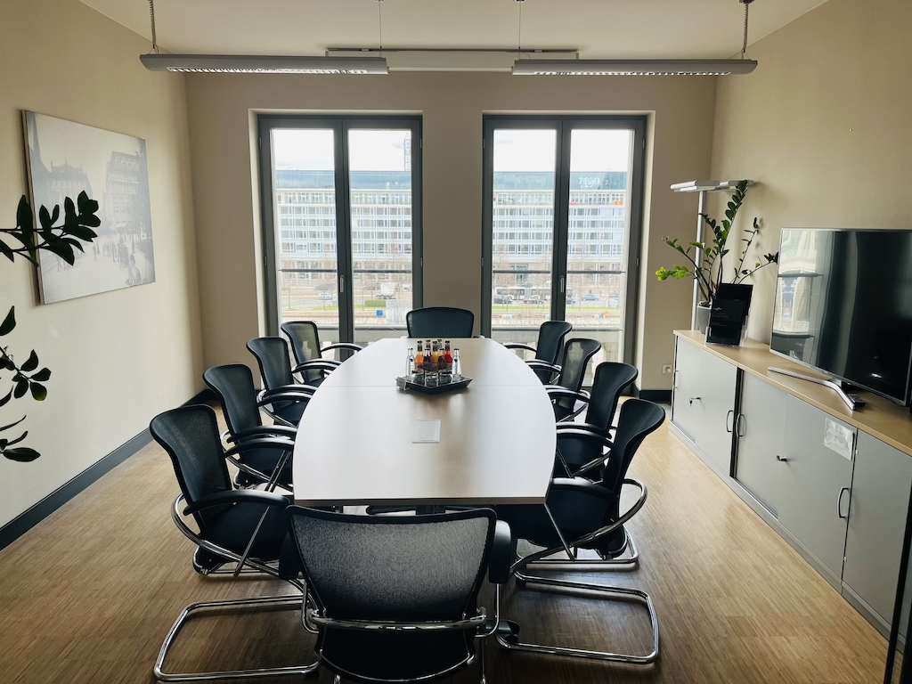 Dieser schicke Besprechungsraum für bis zu zehn Personen am Augustusplatz bietet dir die ideale Lösung, wenn du einen externen Besprechungsraum suchst. Modern ausgestattet und flexibel mietbar, ist unser Besprechungsraum perfekt für Meetings, kleinere Seminare oder Workshops geeignet.